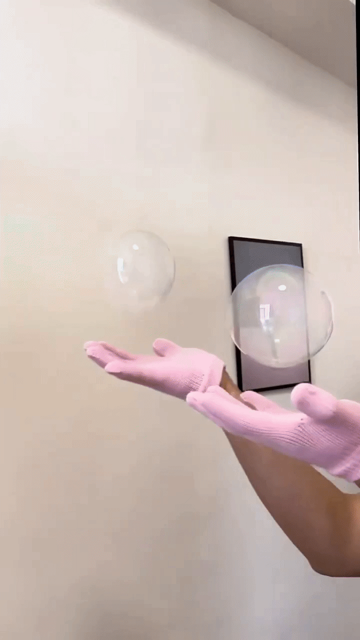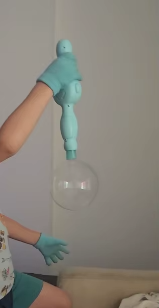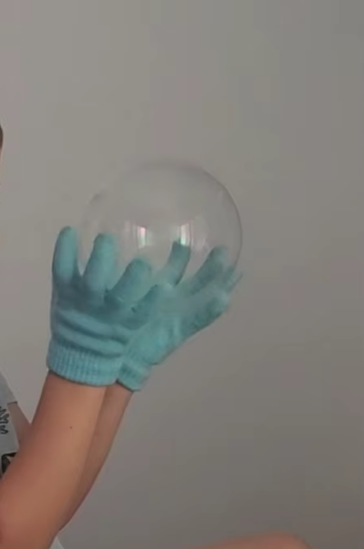 Yanında gönderilen özel eldiven sayesinde baloncuklar patlamadan sektirilebiliyor. Çocuklar bu sayede balonlarla oyun oynayabiliyor.